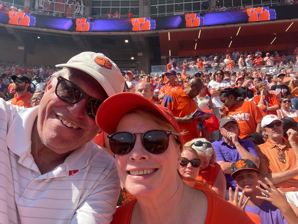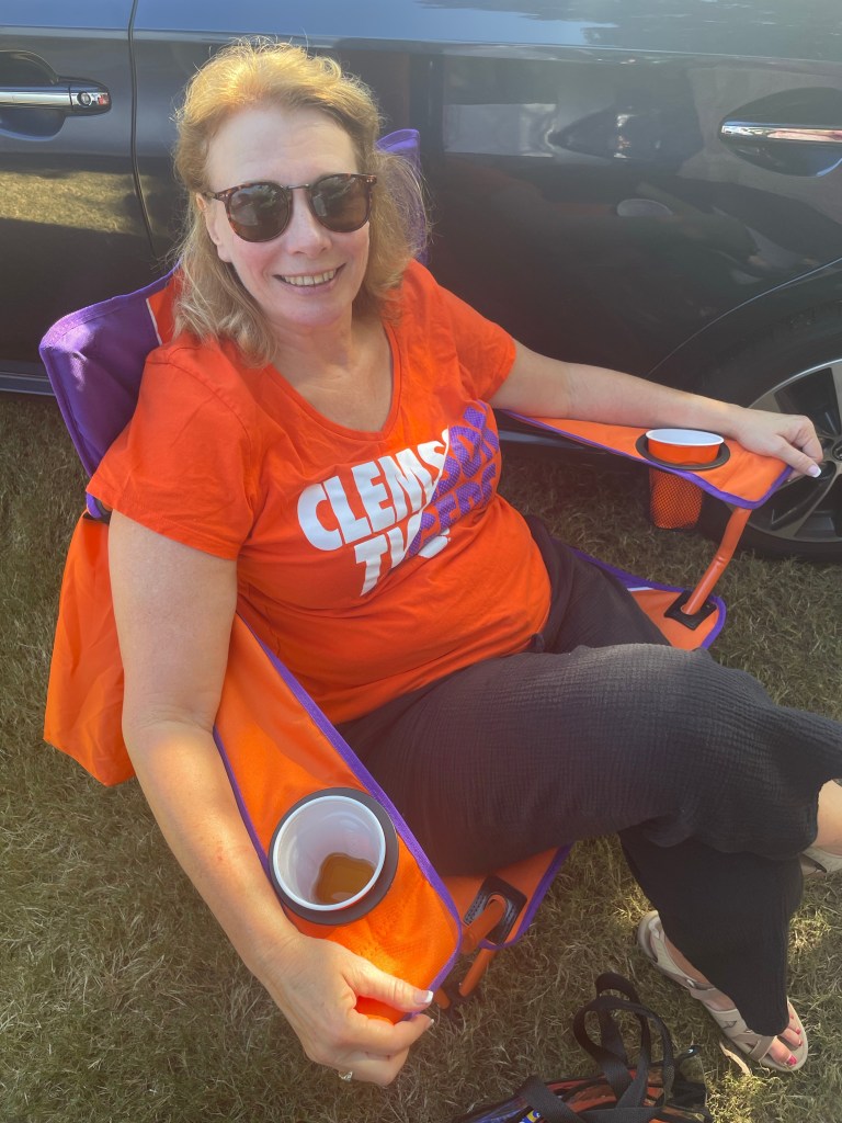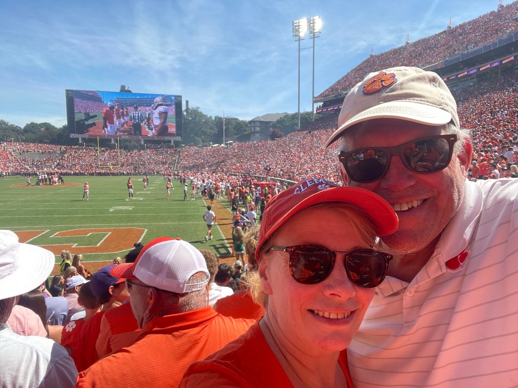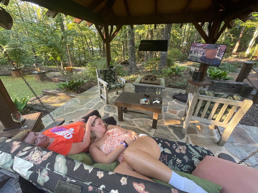 Firepit on our porch while listening to the cicadas “sing” in the dark forest. Thanks for a wonderful day Clemson and Anderson!