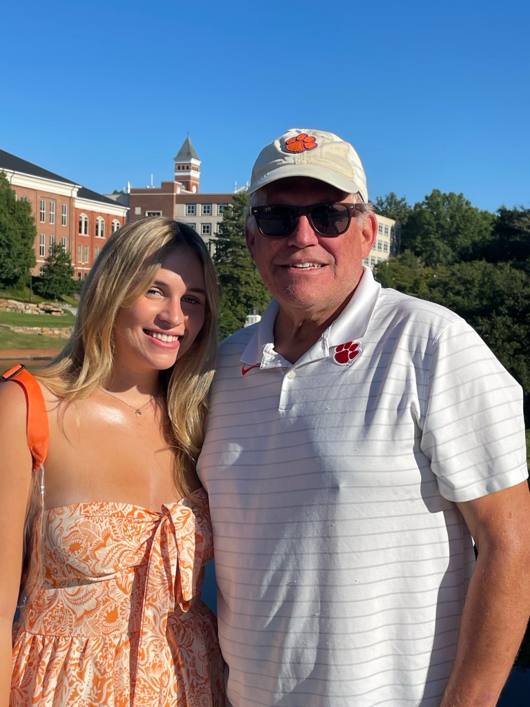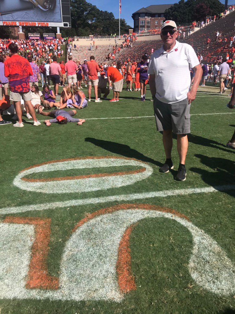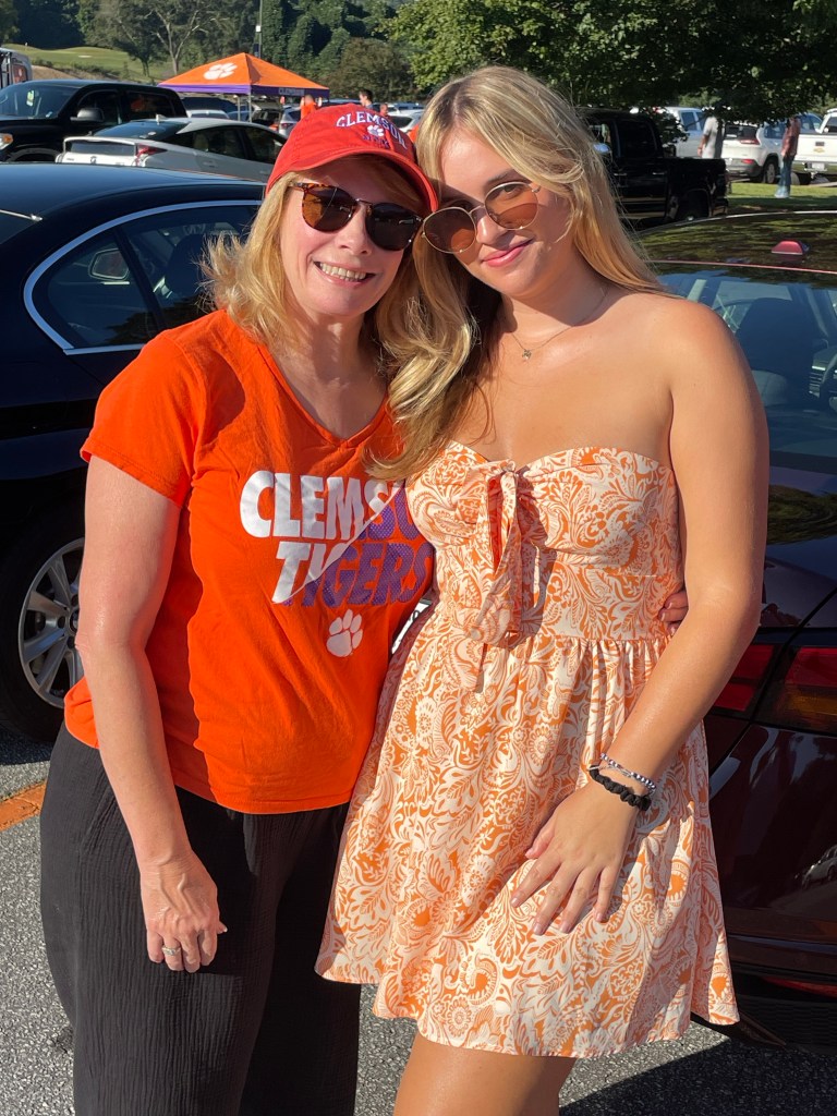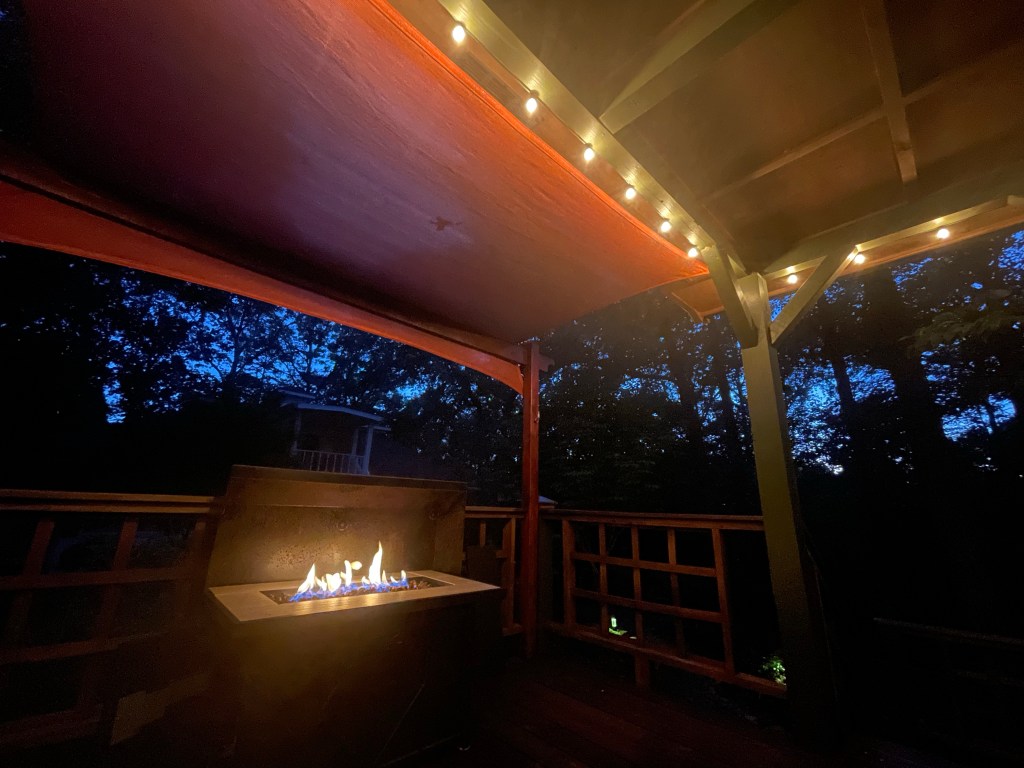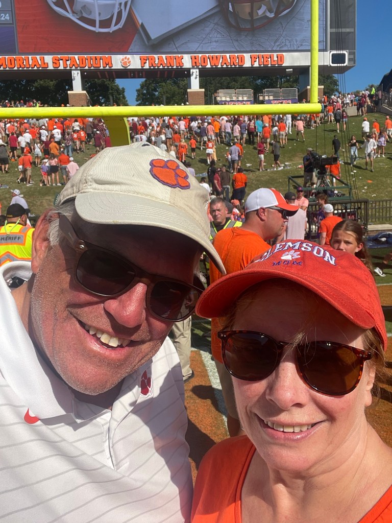 Firepit on our porch while listening to the cicadas “sing” in the dark forest. Thanks for a wonderful day Clemson and Anderson!