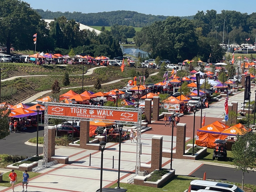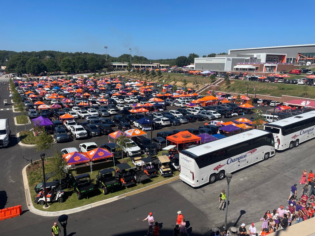 It was a noon EST start time so we decided to leave Airbnb at around 8:30 to give us plenty of time to navigate inbound traffic, park in our pre-purchased parking and walk over to the tailgating site at Tiger Park.
