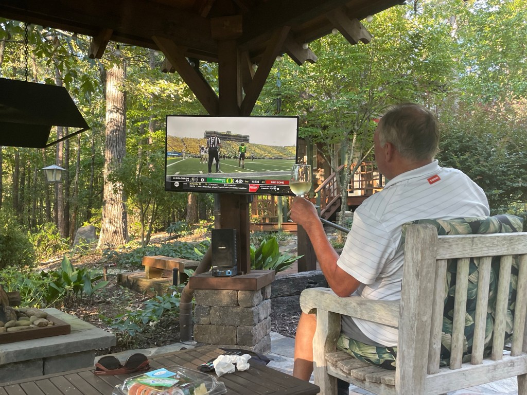 But it was fine as we picked up some dinner along the detour home and headed out to our hosts’ garden to watch some more college football and enjoy another balmy southern evening.