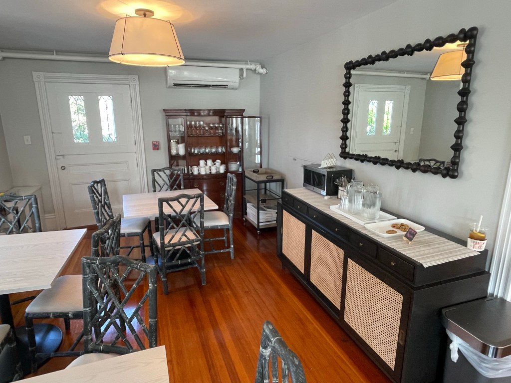 The downstairs common areas where anyone can hang and breakfast is served in the morning.
