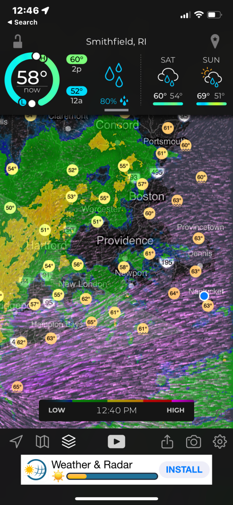 The high-speed ferry was a smooth one-hour ride back to Hyannis. We walked to the car, loaded up and pointed Google Maps towards our next Airbnb destination in Essex, CT. We were lucky earlier this morning that there was no rain in Nantucket but as we made the 2 1/2 hour drive west towards Essex, the rain increased.