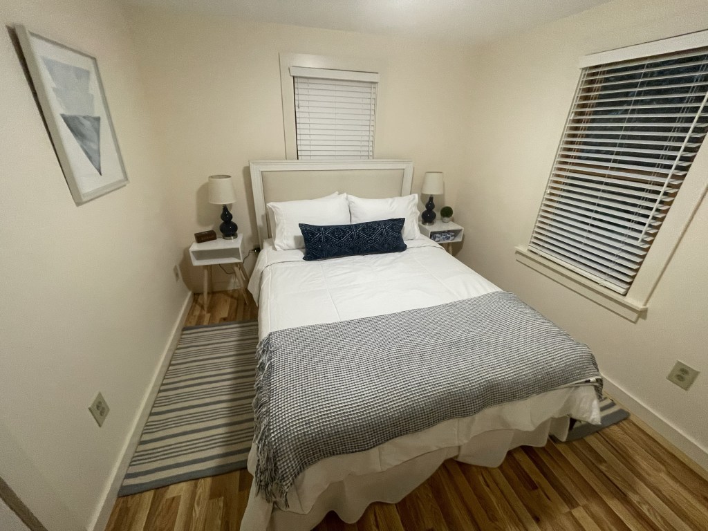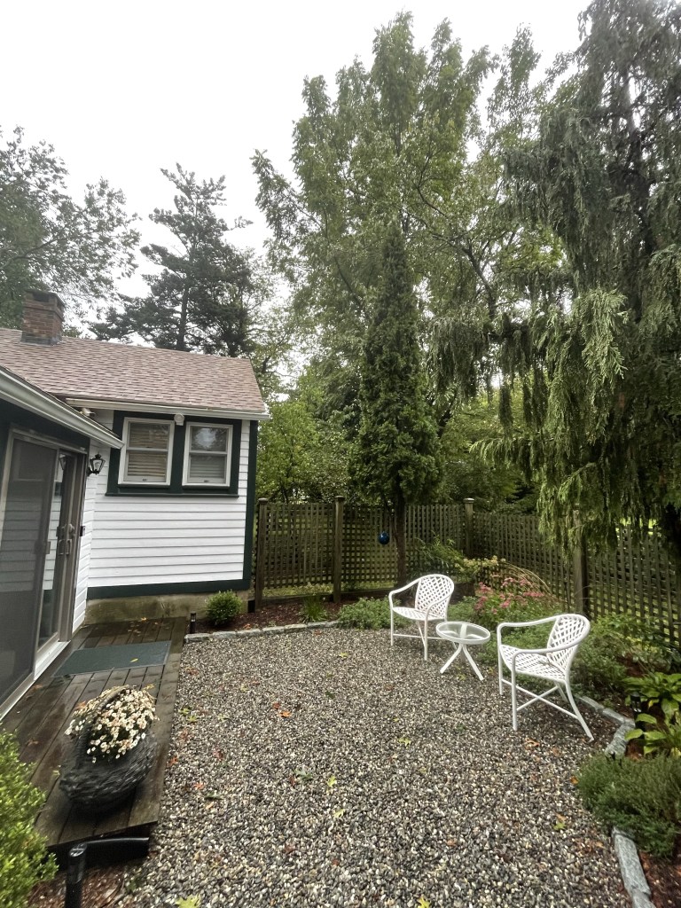 We arrived in the small town of Essex and our Airbnb host provided excellent directions to the cottage which is located at the end of a short gravel road behind a larger main house. We fumbled trying to get the key out of the lockbox in the rain until we realized we were using the wrong 4-digit code. We ran back into the car and searched the emails and found the real password which let us into the unit finally. Some of the joys of travel!