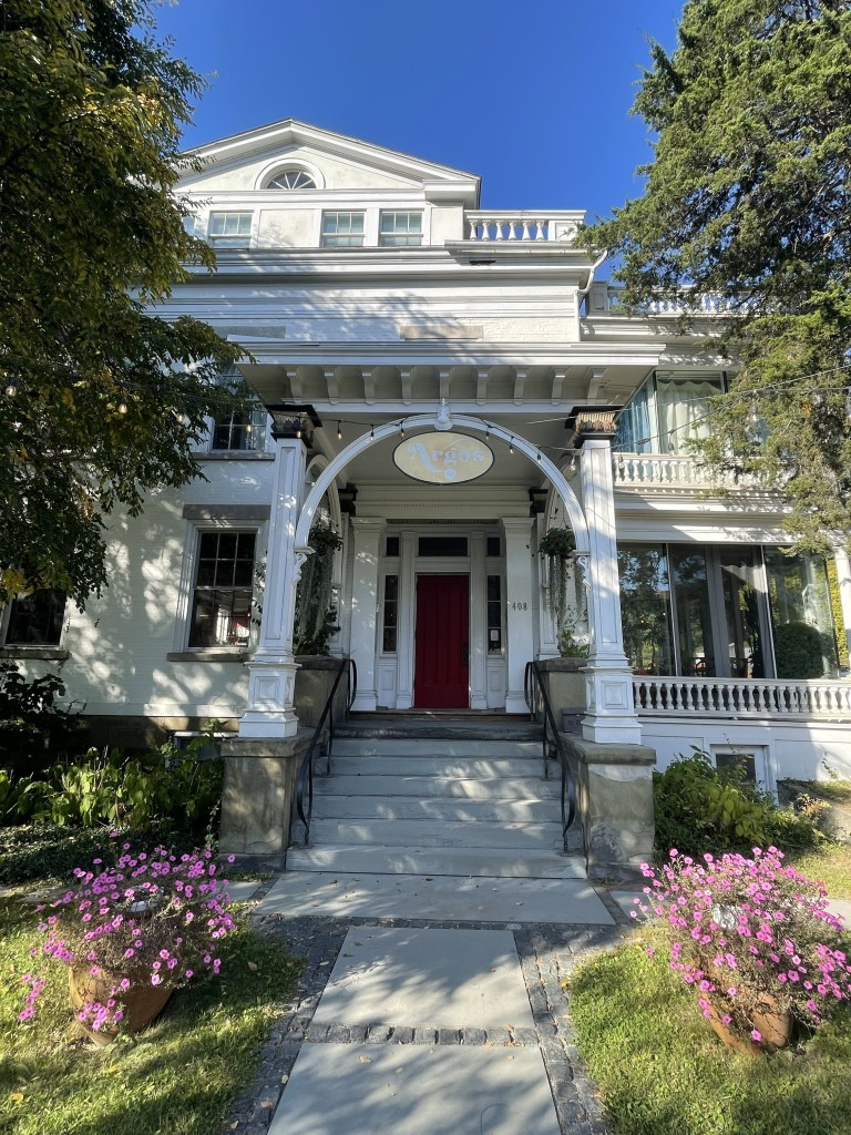 Further from the Inn’s website: “The Argos Inn is a beautifully restored, nationally registered historic mansion in the heart of Ithaca, NY. The hotel is a modern take on a classic inn, meticulously decorated with whimsically refurbished antique french furniture and a collection of 20th century artwork, including original masterpieces by Salvador Dali, Joan Miró, and a plethora of other internationally and locally known artists.”
