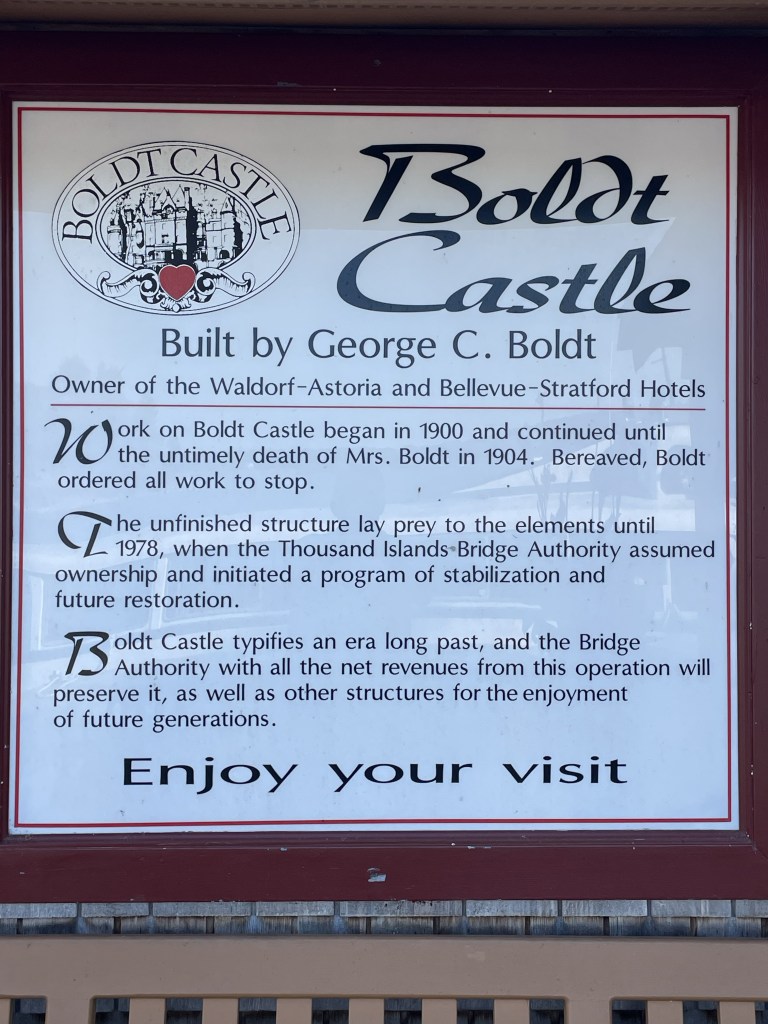 Much like my post from a few days ago about William Gillette, we had absolutely no knowledge of George Boldt. I applaud the Thousand Islands Bridge Authority for taking this immense project on as it’s a stunning place to visit.