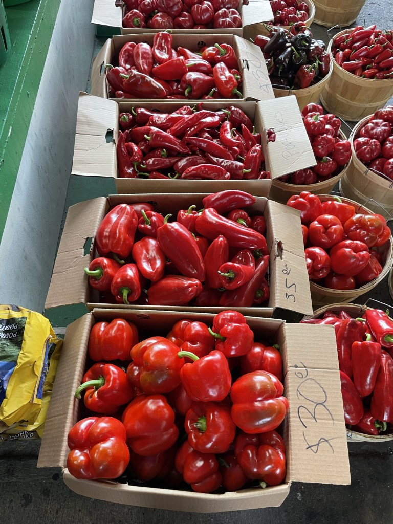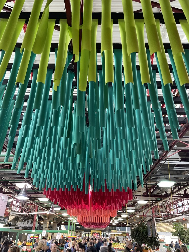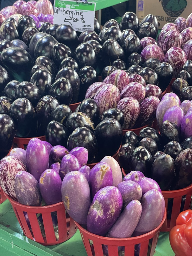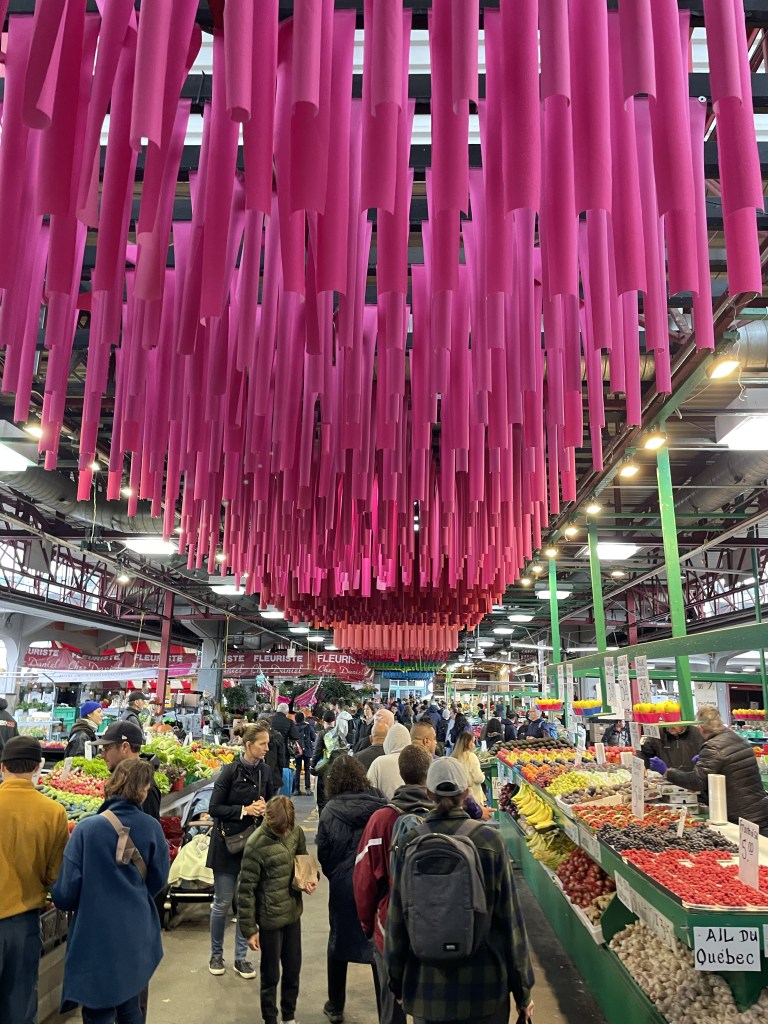 We next moved on to the “Little Italy” neighborhood and the popular Marche Jean-Talon market. This is a semi-open air market (covered) with many different food purveyors. It’s open every day of the week but being a Sunday, we think it was busier than usual. Lots of color!