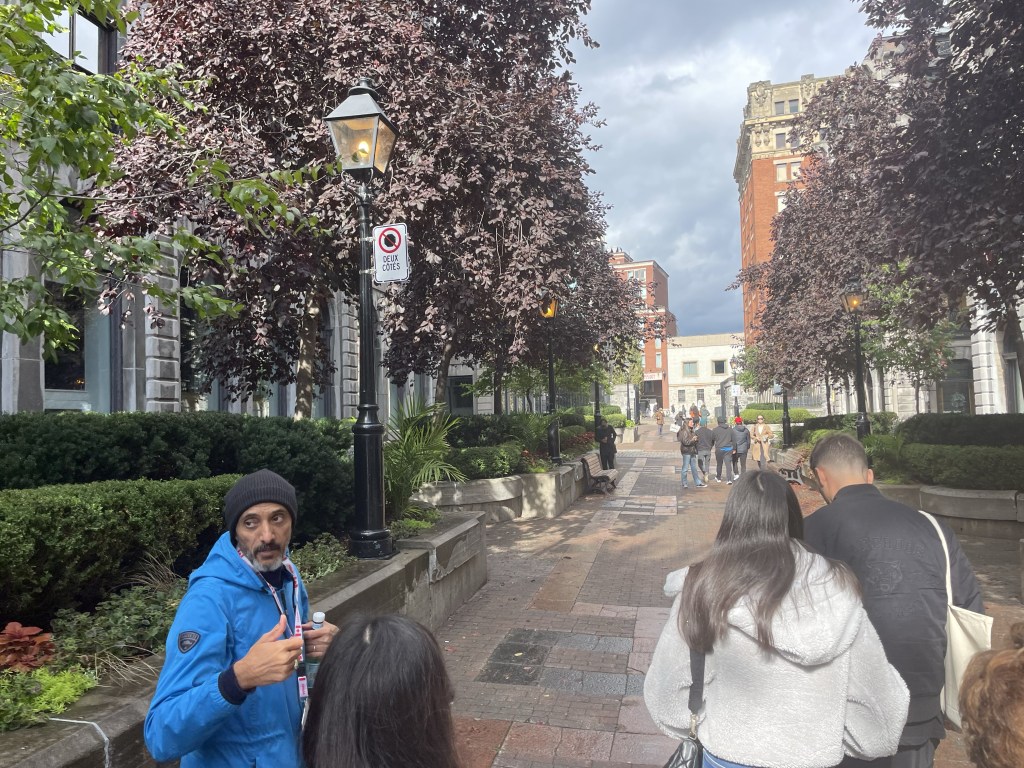 After visiting the L’Oratoire, now almost 5:30, we were now at the end of this excellent tour of Montreal’s “Greatest Hits”. Mounir took us all back to our respective hotels but we asked him to drop us off at Place D’Armes which was actually closer to The David than the Embassy Suites where he first met us earlier in the morning.